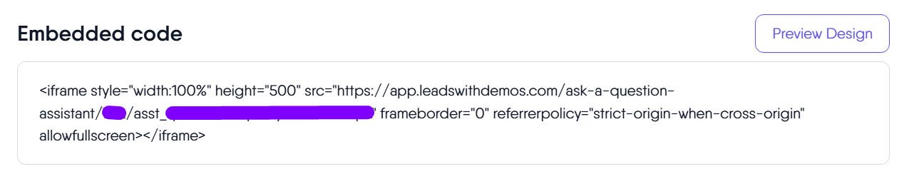 - You should see an embed code snippet. Click inside that code box to copy the full iframe code. It will look something like: