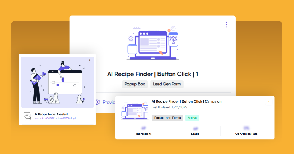 This step ties everything together. We have the pop-up and the AI ready, but we need a campaign to actually trigger the pop-up when someone clicks the “AI Recipe Finder” button on the site.