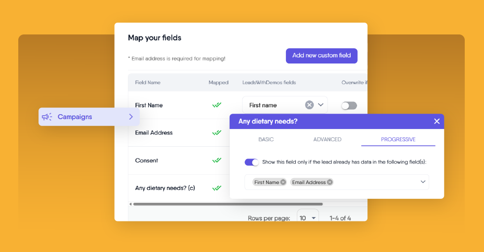 Now it’s time to map the form fields to your subscribers database, and set up progressive questions.