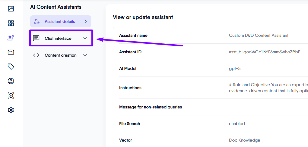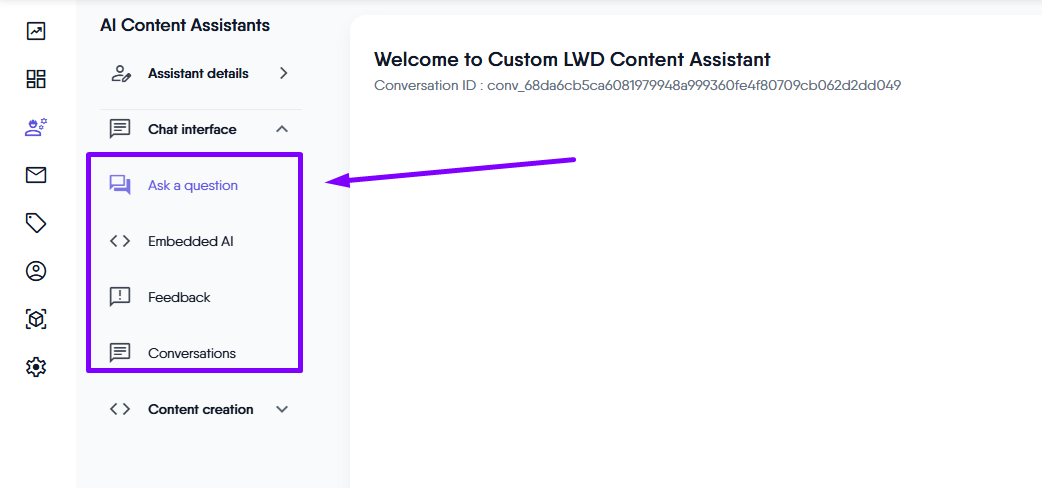 Within the chat interface module, you will find the following pages: